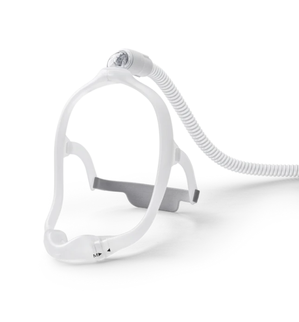 Diseñada para brindar muchos de los beneficios de las mascarillas nasales y de las mascarillas con almohadillas DreamWear permite a los pacientes tener lo mejor de ambos tipos de mascarilla. Su notable diseño dirige el flujo de aire a través del marco para que los pacientes puedan dormir cómodamente.